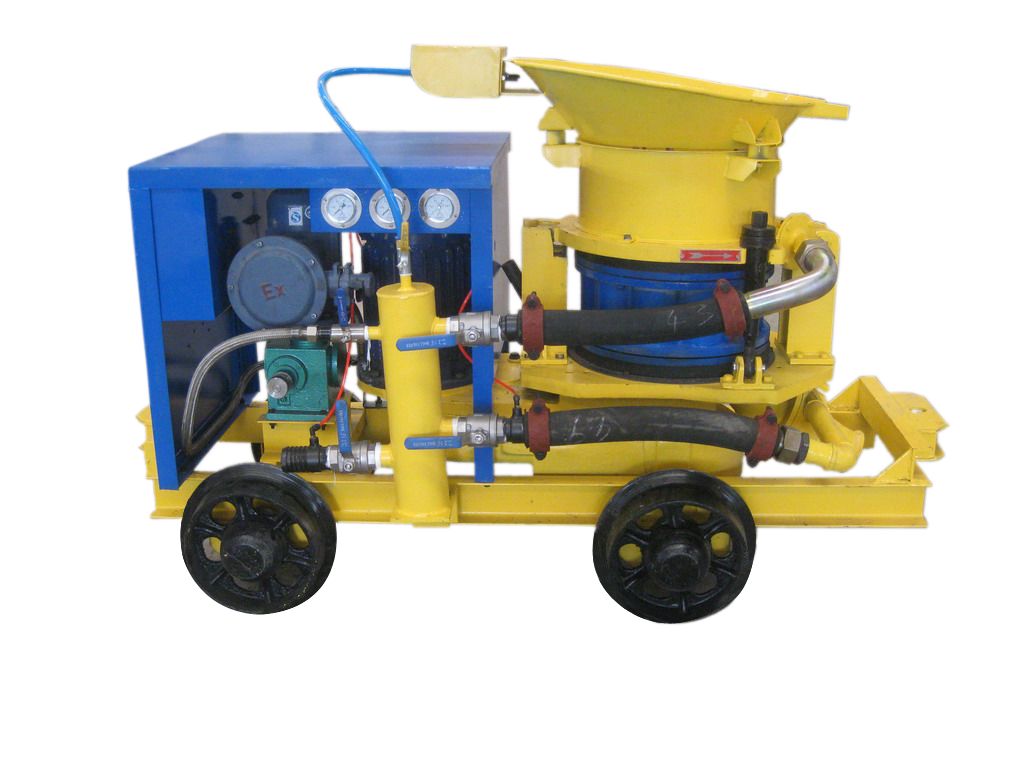 湿喷机用压力喷枪喷涂灌筑细石混凝土的施工法。常用于灌筑隧道内衬、墙壁、天棚等薄壁结构或其他结构的衬里以及钢结构的保护层。喷射混凝土有干拌法和湿拌法两种。干拌法是将水泥、砂、石在干燥状态下拌合均匀,HSP-5湿式混凝土喷射机用压缩空气送至喷嘴并与压力水混合后进行喷灌的方法。