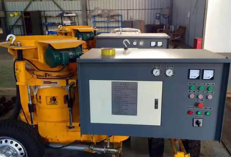 湿喷机用压力喷枪喷涂灌筑细石混凝土的施工法。常用于灌筑隧道内衬、墙壁、天棚等薄壁结构或其他结构的衬里以及钢结构的保护层。喷射混凝土有干拌法和湿拌法两种。干拌法是将水泥、砂、石在干燥状态下拌合均匀,HSP-5湿式混凝土喷射机用压缩空气送至喷嘴并与压力水混合后进行喷灌的方法。